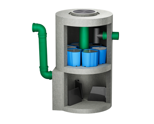 Hydrosystem może być montowany szeregowo z systemem Hydroshark, co dodatkowo optymalizuje skuteczność separacji i czyni go odpowiednim także do zatrzymywania